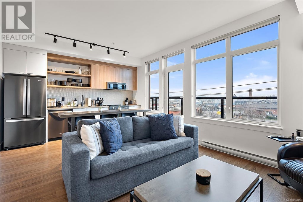 Experience urban living at its finest in this modern 1-bedroom, 1-bathroom condo in the Ironworks in the Old Town District. Boasting a sleek open-concept design, the residence features a gourmet kitchen with stainless steel appliances, a spacious living area with large windows offering scenic views, and a private balcony for outdoor relaxation. Enjoy the convenience of in-suite laundry, storage locker, along with a common courtyard, bicycle storage and SECURED UNDERGROUND parking. With its prime location, you're steps away from vibrant city life, boutique shops, and exquisite dining. Don't miss the opportunity to call this stylish condo home in the heart of Victoria. Only a few years old; this condo is still under the New Home Warranty. (id:6289)