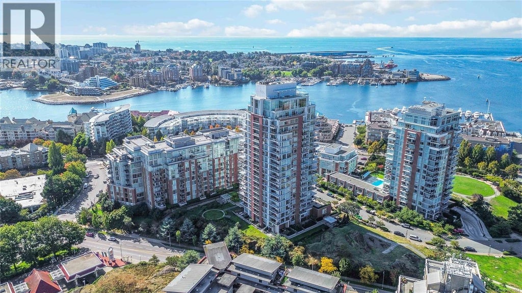 Discover one of the most exclusive homes at The Promontory, nestled within Bayview Place. This contemporary steel and concrete high-rise is situated in the vibrant heart of the Victoria West waterfront. This property has a unique and EXCLUSIVE 1,200 sq. ft. private terrace offering panoramic views of the inner and outer harbour, along with the Olympic Mountains — an ideal setting for hosting summer gatherings. Complete with a hot tub, outdoor fire pit, natural gas BBQ hook up and irrigation this stunning outdoor retreat overlooks lush greenery and southwest-facing vistas. Inside, you'll find a spacious primary bedroom with a sleek, modern ensuite, a second well-appointed bedroom and bathroom, and a bright, open-concept living and dining area highlighted by floor-to-ceiling windows. Premium finishes are featured throughout the home. This unbeatable location is just minutes from downtown by foot, bike, or bus, & close to parks, shops, the shoreline and new Victoria international Marina. (id:6289)
