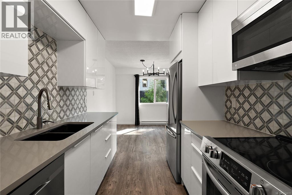 Brand New Quartz Kitchen Countertops Aug 2025. Build sweat equity without lifting a finger. The strata are proactively planning hallway renovations and plumbing upgrades with intent to allow secondary bathrooms, in-suite laundry & possibly pets (buyer to verify). Major upgrades already completed—roof, elevator, exterior envelope & windows—giving the complex a refreshed feel with spacious layouts. Perched on the 3rd floor, the unit faces south. Inside, reno’d in 2022 with 3 bedrooms & 1 bath. Bright, efficient layout with generous bedrooms, spacious living area & plenty of in-unit storage. Ideal for first-time buyers, savvy investors, or anyone looking to build sweat equity—without heavy lifting. Move-in ready with potential to add value over time. Walk Score of 86 — steps to groceries, cafes, parks, schools, transit & minutes to downtown Victoria (id:6289)