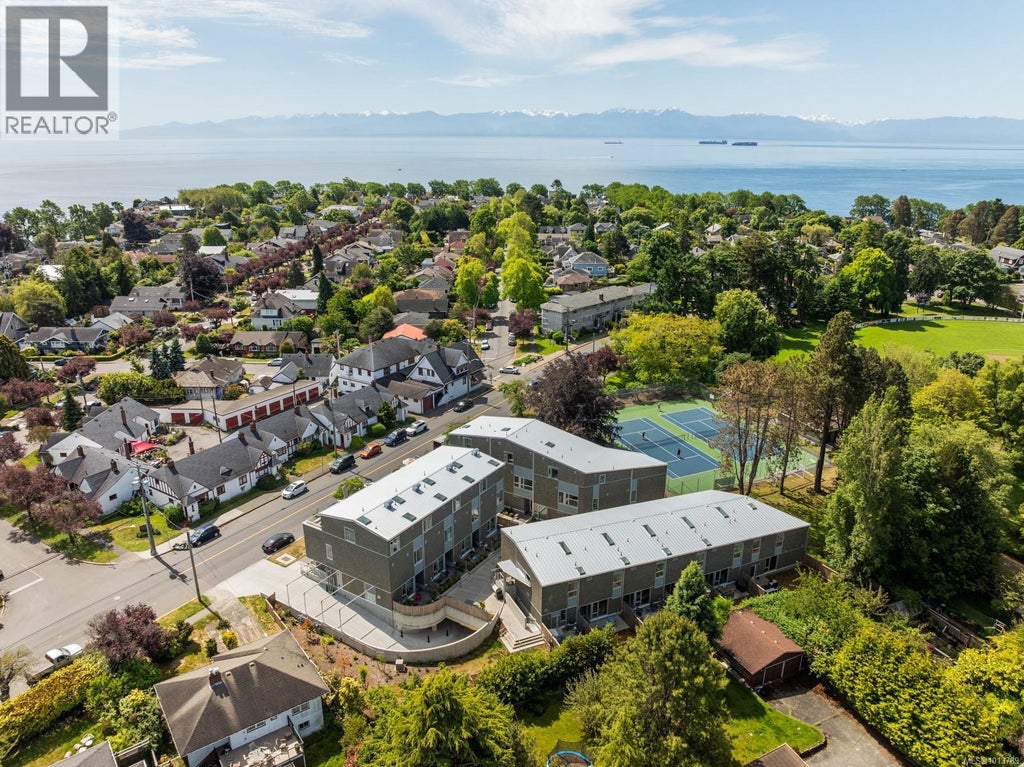 Experience refined living in Fairfield, one of Victoria’s most coveted and walkable neighbourhoods. This 2 bed, 2 bath townhome at Rhodo by Aryze offers 985ft² of intelligently designed living across two levels, plus a 183ft² private patio. The main floor features an open-concept kitchen with Bosch appliances, gas cooktop, quartz countertops, and custom cabinetry, alongside a full bedroom, 3-piece bath, and in-unit laundry. Upstairs, the spacious primary bedroom includes built-in storage and a 4-piece ensuite. With 9'+ ceilings, oversized windows, and oak flooring throughout, the home feels bright and spacious while maintaining a warm, modern aesthetic. Includes secure underground parking, dedicated bike storage, and a storage locker. Rhodo is a boutique collection of architecturally designed, sustainably built townhomes in a quiet residential pocket just steps from Gonzales Beach, Fairfield Plaza, parks, transit, and top schools. (id:6289)