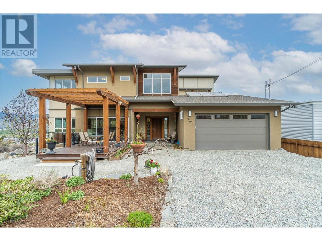 ONE OF A KIND! This is the perfect home for the large family or group living Main floor boasts a breathtaking open plan with huge windows to capture the stunning views. The large island kitchen boasts 2 dishwashers & stainless appliances plus a large walk in pantry for great storage. Wall of cabinets with clever microwave cabinet built in. The spacious living and dining room are great for the largest gatherings with panoramic views from every window. 2 large bedrooms with 4pc ensuites on the main plus 2pc guest bath and office area with outer door. Central shaft for future elevator provides great storage on each level till elevator is desired. Upper floor features 4 more deluxe bedrooms each with a 4pc ensuite and large closet. Upper laundry room, plus a dramatic library that overlooks the vaulted ceiling with feature origami crane mobile. Outer door to relaxation deck and external staircase. Basement level enjoys access to the fenced yard & gardens with UG sprinklers for easy care. 2 more bedrooms down with shared 4pc bath, large rec room and laundry room. This area designed for future suite if desired. Utility room has components for the solar heat recovery system, Central Air, HRV system and extra storage plus featured climate controlled cold room pantry. Property comes with 9 open parking spaces plus double garage. (id:6289)