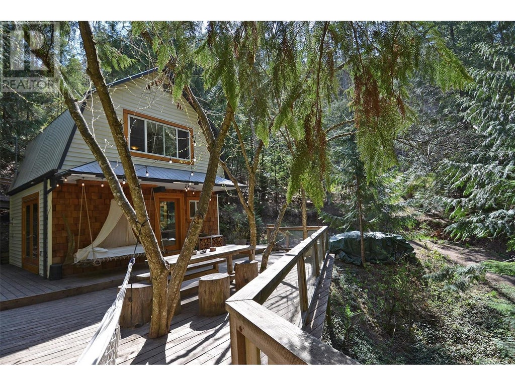 Tucked away among the trees, the charming 2-bedroom, 1-bathroom home provides a peaceful retreat on over 18.45-acres just minutes from downtown Winlaw. Across the street (a few minutes walk) you will find a refreshing swimming hole and easy access to the rail trail. Inside, the open-concept kitchen and living room are highlighted by engineered hardwood floors, wood doors and windows, a wood burning stove and an updated bathroom. Upstairs, you’ll find two bedrooms and a convenient laundry area. Outside the home features a spacious front deck, a smaller back deck off the primary bedroom. There is an abundance of charming landscaping and a small brook through the property. Additional highlights include a garage located at the base of the driveway and a 512 sq. ft. workshop situated through the garden behind the house. The upper section of the property is accessible via a separate road and opens to a cleared area with multiple potential building sites. The seller has started the subdivision process including a newly drilled well. (id:6289)