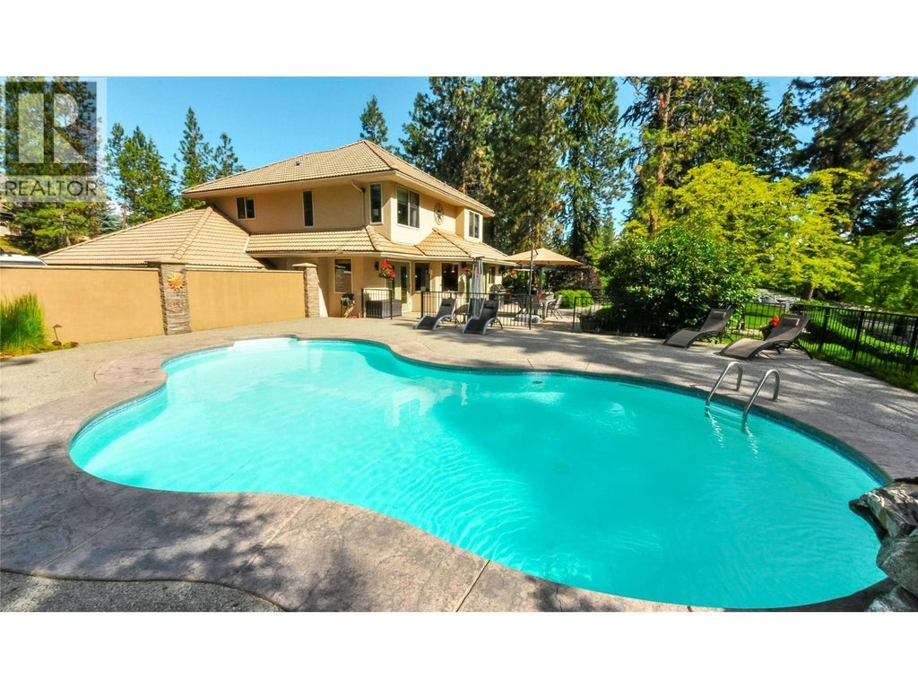 PRIVATE PARK-LIKE SETTING WITH POOL + LEGAL SUITE IN SOUTH EAST KELOWNA! Surrounded by nature on a 0.99-acre lot, this immaculate family home offers the perfect blend of indoor-outdoor living close to golf courses, wineries & recreation! Built for entertaining & ideal for families, the open floor plan includes 3 bedrooms upstairs, featuring a primary retreat with a 4-pc ensuite & walk-in closet. The main level has a spacious home office, a formal dining room, living room (high ceilings) & a cozy family room—both with gas fireplaces. The kitchen features a large island, SS appliances & a breakfast nook that opens up to a private back patio with a pergola, gas BBQ hookup, lounging spaces & ambient night lighting for magical evenings under the stars! Soak up the sun & enjoy the saltwater kidney-shaped pool with a waterfall feature overlooking your own private sanctuary with custom rock work & mature landscaping adjacent to ALR land! With infrastructure for an outdoor kitchen/change room, this property also offers RV parking & potential for a detached shop, complementing the massive 3-car garage + workshop area. Downstairs, a large rec room, storage area & legal 1-bedroom suite (over $100k in value!), is perfect for in-laws or rental income. Find peace & quiet in a secluded setting while being close to local amenities, golf courses, 2.9km to Elementary School. Fast Possession Possible! The Seller is downsizing, and may consider a smaller home on trade + cash difference. (id:6289)