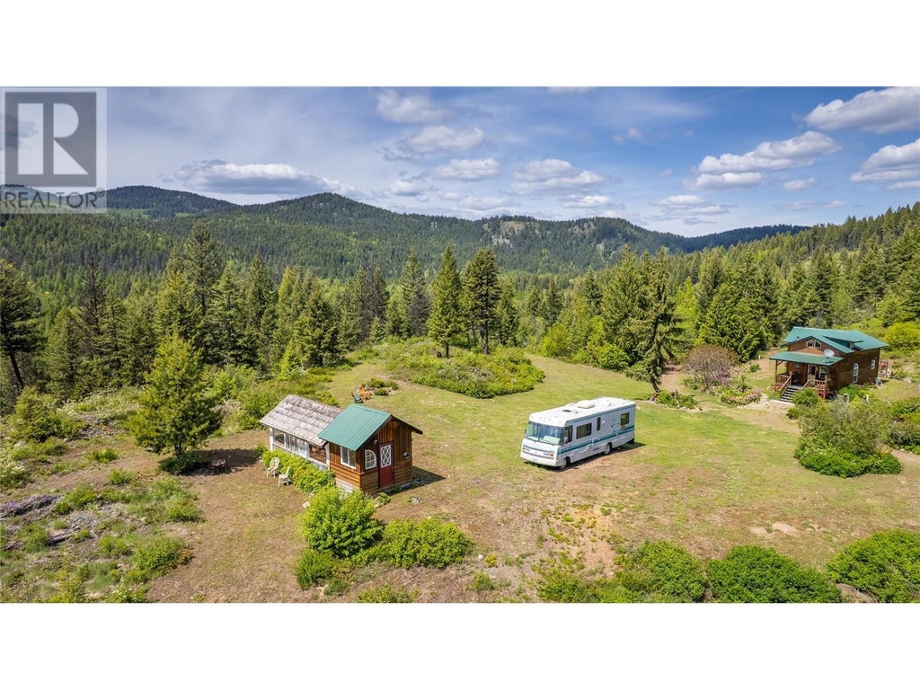 Hidden in the mountains, just 10 minutes from downtown Grand Forks, you will find this one-of-a-kind 52 acre property. Main home with secondary home. Not in ALR. It is surrounded by crown land on 3 sides. 2 driveways for 2 homes. Lots of quad + snow mobile trails, + recreational accesses. A very private custom-built home with 1200 finished sq. ft. There is also a 600 sq. ft. renovated mobile home. The home is nestled in a beautifully landscaped, park-like setting. The charming 2 storey home exudes a cabin feel with exterior pine siding and knotty pine throughout the interior. The home has a welcoming front porch entrance. The cozy first floor living/dining area features a wood heater with natural stone wall. Country kitchen. Combined laundry/bathroom/mudroom at rear entrance is convenient. Upstairs is a large bedroom, walk-in closet and lounging area suitable for an office or den. Imagine relaxing by the cozy wood heater on a chilly day or putting your feet up and listening to the tranquil sounds of nature from your front porch. This rural sanctuary is perfect for those who enjoy privacy, all recreation, unobstructed views and a quiet lifestyle. Additional outbuildings buildings include; 2 large workshops on concrete pads (1 suitable as a garage), toolshed, 3 woodsheds, pump house, a large greenhouse. Subdivision potential, marketable timber and zoning for a variety of uses could generate additional income. (id:6289)