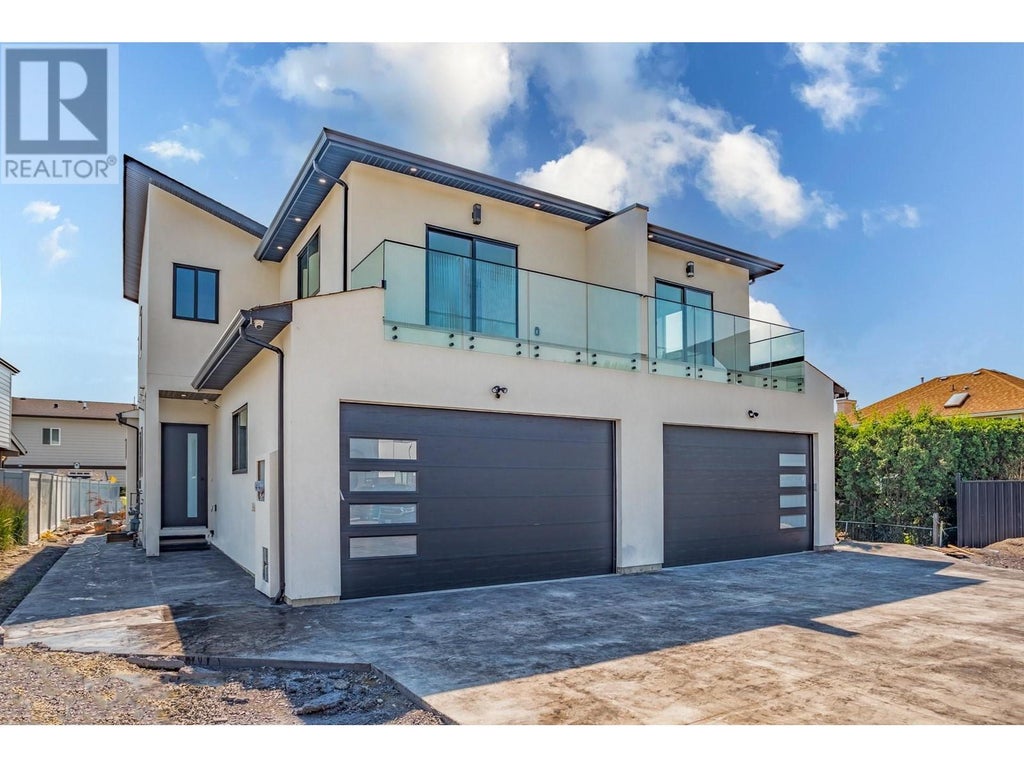 Welcome to this stunning modern new built half duplex located in the sought-after neighborhood of North Glenmore. This quality-build move in ready home features five bedrooms, five bathrooms, and includes 1 bedroom legal suite, offering rental income. The main home boasts of 4 bedrooms on the top floor, 2 of the bedrooms with ensuites and walk in closets. Enjoy the modern and sleek design with quartz counters, laminate flooring and a spacious kitchen with large island, perfect for entertaining! The attention to detail shows thru feature walls and quality finishes throughout the home. Beautiful professionally manicured fenced backyard and irrigated. Attached double garage with enough parking for at least four more vehicles in the driveway. This centrally located property is close to schools, shopping, the airport, UBC and an array of amenities. Additional features include built in vacuum system and comes with 2-5-10 year warranty. NO GST Payable. (id:6289)