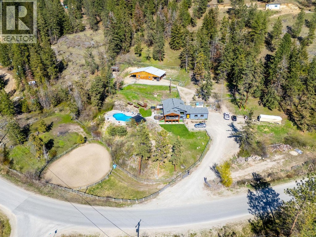 Set on 10.14 acres in scenic Ellison, this estate offers breathtaking views of Kelowna, Okanagan Lake, and the valley below. The 2,700 square foot four bedroom, four bathroom home has undergone extensive renovations over the years, including new windows, siding, R8 Rockwool insulation, and most recently, a brand-new roof in 2025. Inside, maple hardwood spans the main level and primary suite. The fully renovated ensuite offers a luxurious retreat, while the hickory kitchen features a quartz island and Corian perimeter counters. Step outside to a saltwater pool, full irrigation, and a spacious 1,400 square foot barn/workshop originally built as a five-stall barn with an asphalt floor, rubber matting, a heated tack room, hot/cold water, and now partially converted to an insulated 16 feet by 36 feet workshop with mezzanine storage and remaining barn space. The entire property is fully fenced, with multiple small pastures and a flat, upper building site complete with RV power hook-up. The 12 gallons per minute well is supported by a 2,000-gallon cistern installed in 2010 and a new well pump added in 2024, offering strong infrastructure for household and agricultural use. There’s an abundance of parking, storage, and space for all your recreational vehicles and equipment. Located in the Ellison Fire Protection District, with crown land access nearby, just five minutes to the airport and 20 to downtown. A rare blend of usable acreage, long-term improvements, and unmatched views—rural Okanagan living at its finest. (id:6289)