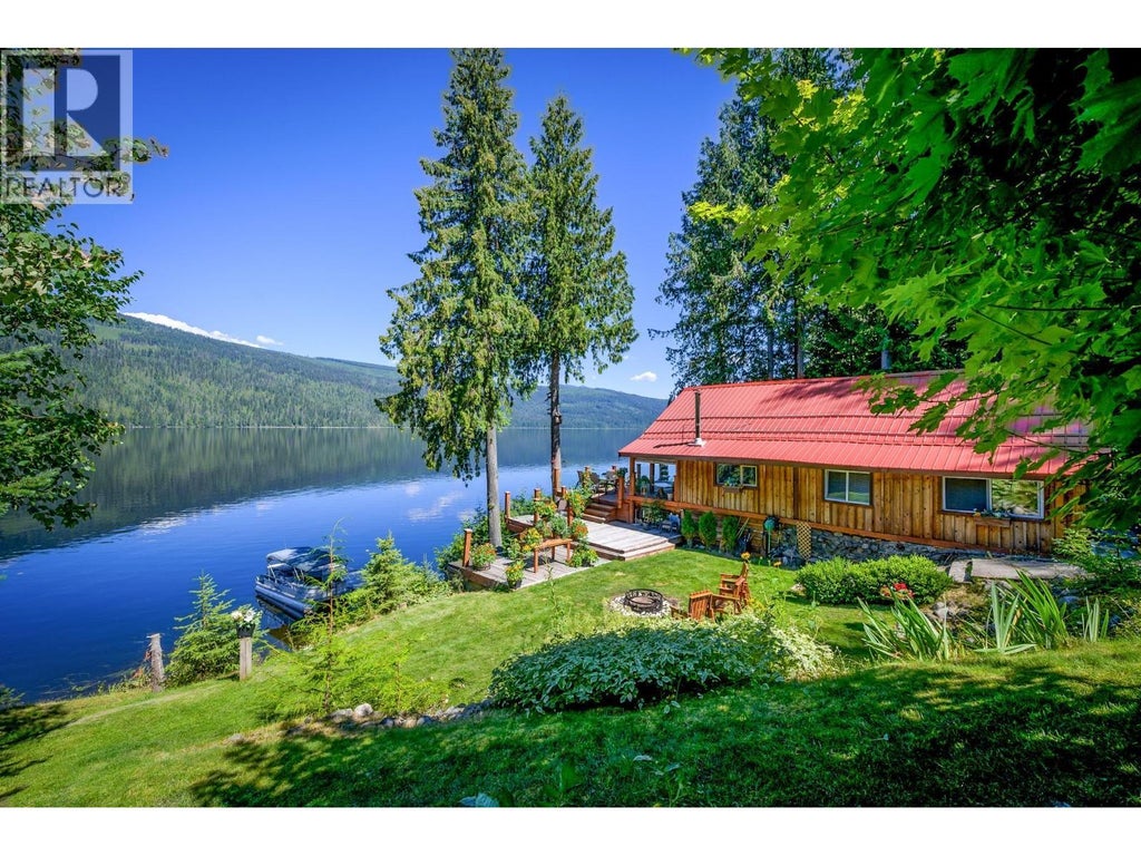 Absolutely stunning East Barriere Lake lakefront retreat with a cute 2 bedroom and den cottage and good living space to enjoy the lake life. This property has year round access off of the main FS road, 25 minutes from Barriere and 1 hour 15 from Kamloops. Enter the property along the private driveway and you are greeted with sprawling lake views. Upon entering the home you will see there is a number of upgrades throughout. The main living space is open and features an updated kitchen with island, vaulted ceilings and good sized dining space. The living space walks out to the main deck which offers a lot of bonus living space for those warmer months. Perched above the lakefront you can sit for hours and appreciate these views! The main floor of this home includes a primary bedroom, 4 piece bathroom and laundry/storage space. The top loft level of this home includes a loft/bedroom space, additional bedroom and 2 piece bathroom. The basement area has a separate entry outside of the home. You will find lots of great storage here, one of the rooms could become a great hangout space and a utility room. This home features a large carport area (22x29 ) with attached workshop (20x17), plus bonus storage space. The multiple decks lead down to the waterfront where you will find your own private dock and a pontoon boat is included if a buyer wishes! Other features of this property include a hot tub overlooking the view space, a firepit/yard area and lots of space for future development. Day before notice appreciated for showings. (id:6289)