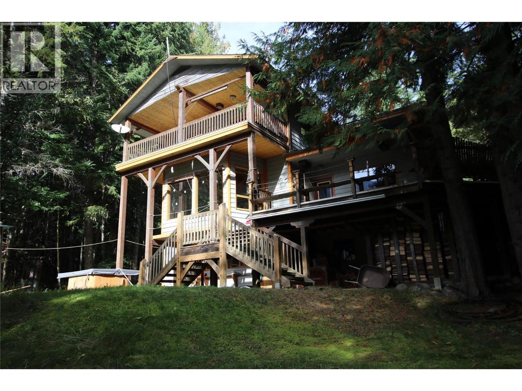 Unique, handcrafted post and beam home, situated on 8.6 acres of lakeshore, just 20 minutes south of Nakusp. The home offers 1,300 sq. ft. on the main floor, with edge grain fir flooring in the large open kitchen & dining area, a wood burning cook stove and a pantry. In the living room, you can enjoy the view inside and out - the custom beam work and a stone faced fireplace, or Ingersol Mountain and Arrow Lake. There is a total of three bedrooms and three bathrooms spread across three levels. The open floor plan with vaulted ceilings provides plenty of space for family gatherings. The 2nd floor master bedroom has a generous covered balcony, useful as an outdoor sleeping area. There are two large sundecks off of the main floor, with stairs down to the ample-sized garden and orchard area; featuring mature fruit trees, berry bushes & hazelnuts. Down an established driveway to the lake, you will find a boat house - perfect for storing canoes and kayaks. Additionally, there is an engineered greenhouse, a garden shed, tractor shed, root cellar, sleeping cabin and chicken coop. The substantial two-story, three-bay garage measuring 24' x 58', includes a woodworking shop and lumber dry-storage upstairs with a ramp for vehicle maintenance downstairs. The home has wood & electric heat and licenced gravity-fed water with irrigation rights. Mature timber covers the majority of the property, offering shade, privacy and feelings of serenity. The acreage is within the ALR and backs onto Crown land. The adjacent 7 acre treed lot is listed separately, MLS(r) 10364732 but would make a complementary addition to this farmstead. (id:6289)