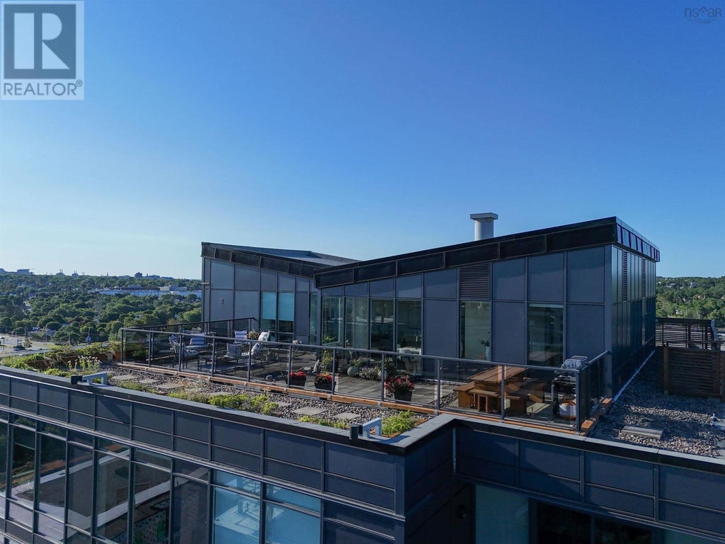 Life above the city... redefined. Welcome to Halifaxs only true rooftop penthouse: a bold, sky-level sanctuary that lives like a private home but with all the ease and elegance of condo living. Perched atop the iconic St. Lawrence Place, this architectural one-off rises above the roofline, with no shared walls, no neighbours, and nothing but panoramic 360° views of the harbour, Bedford Basin, Northwest Arm, and city skyline. Spanning approx. 1400 sqft of intelligently designed interior space plus a 750 sqft private wraparound terrace, this entire 14th-floor residence is a masterclass in intention and execution. Designed by the current owner, who also designed the entire building, a renowned architect behind 140+ buildings in Halifax, every detail reflects purpose, precision, and presence. Inside, youll find sun-drenched living and dining spaces, custom millwork, curated finishes, in-unit laundry, and a spa-worthy ensuite. The kitchen is streamlined and stylish, while the ducted heat pump delivers efficient comfort year-round. Outside, the expansive terrace is an entertainers dream, or your own private sky retreat. The building offers all the extras: a fitness centre, social room, underground parking, and private storage. Located just off the Peninsula, youre steps to essentials and minutes from downtown, with easy access to major routes. Whether youre a globe-trotter, downsizer, or collector of irreplaceable properties, this penthouse isnt just rare its untouchable. Architecturally iconic. Elevated living. A true legacy in the sky. Further details available upon request through the propertys representative. (id:6289)