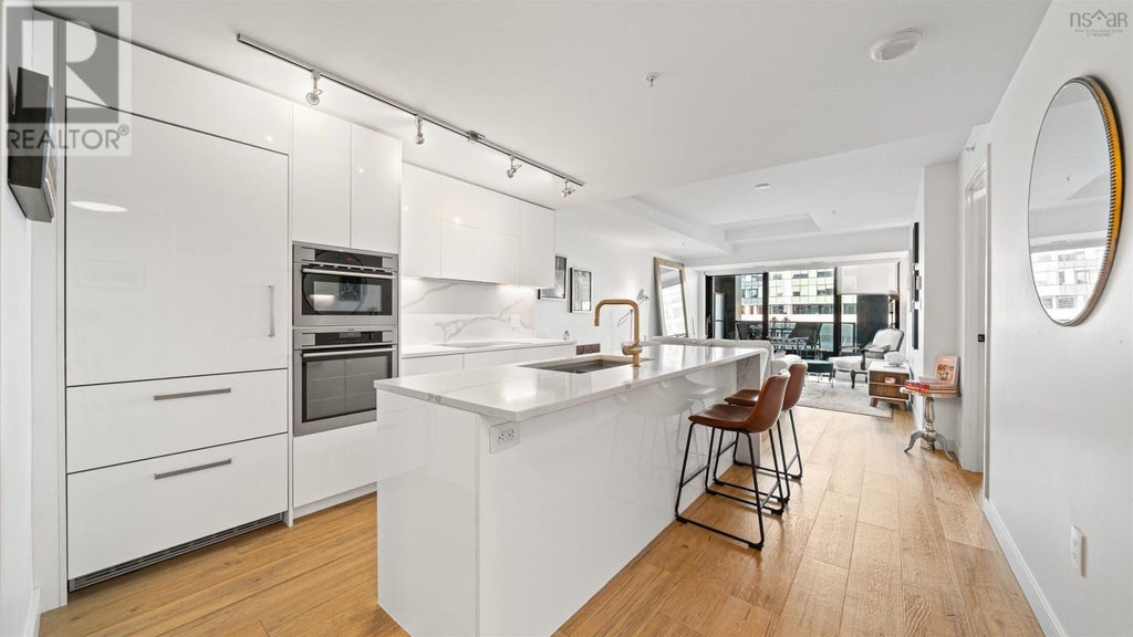 Welcome to The Roy, where design, luxury, and lifestyle converge in the heart of downtown Halifax. This 2-bedroom, 2-bath residence spans nearly 900 sq. ft., complemented by over 200 sq. ft. of private balcony space showcasing sweeping city views and unforgettable sunsets. On this side of the building, there are no neighbouring condos looking in, ensuring rare privacy and a truly private outdoor retreat. Inside, the home is crafted with engineered hardwood, quartz countertops in the sleek chefs kitchen, ceramic tile in the spa inspired baths, automated blinds, and designer fixturesa modern blend of style and sophistication. Beyond the residence, The Roy sets a new benchmark for elevated living. Its 8th-floor amenities rival a private members club: a tranquil heated indoor pool, fully equipped fitness centre, wellness suites, sauna, steam room, private theatre, and a rooftop lounge with a fireplace. Residents also enjoy 24-hour concierge, a business centre, guest suite, library, the only car elevator in Halifax with parking, storage, car wash, and pet-friendly spaces. The Roy is a stone's throw from the Queen's Marque and the Halifax Waterfront restaurants. This is more than a homeits a statement. Discover a lifestyle of refinement, comfort, and inspiration at The Roy. (id:6289)