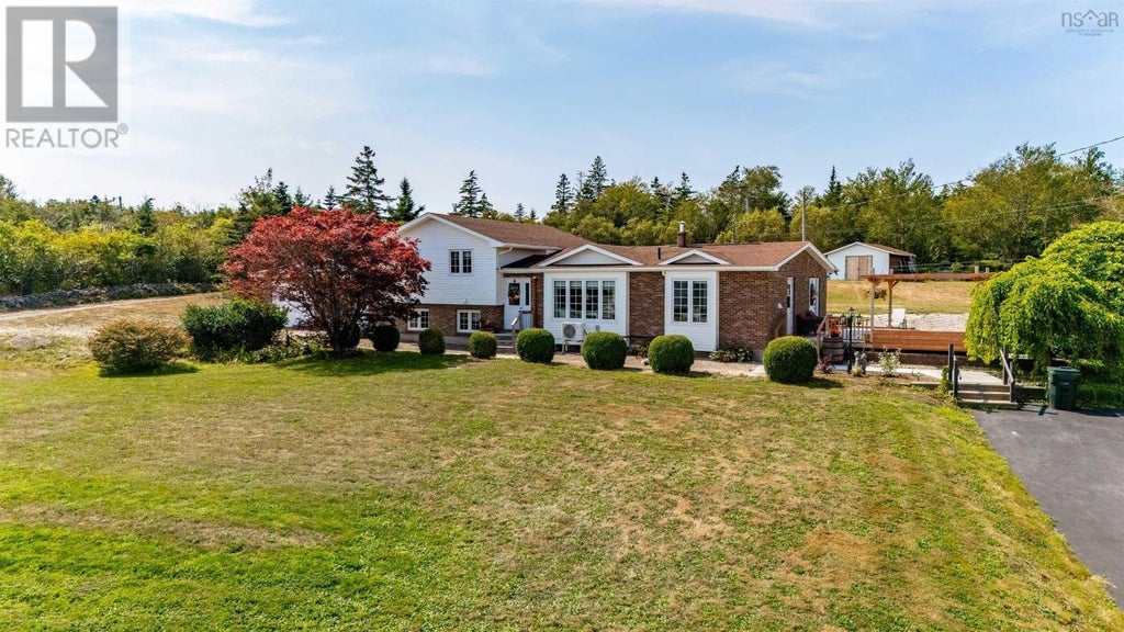 Discover coastal living just 20 minutes from Yarmouth in the historic fishing village of Wedgeport. This inviting 3-bedroom, 2-bath side split sits quietly off the road with stunning ocean views, a paved driveway, private backyard, mature landscaping, and a new deck with a pergola perfect for outdoor entertaining. A 16 x 24 shed and an attached 1.5-car garage provide ample storage and convenience. Inside, enjoy a bright, open floor plan refreshed in the last 2-3 years, featuring beautiful hardwood and tile floors throughout. The kitchen showcases oak cabinetry, a striking quartz countertop, a farmhouse sink, and a tile backsplash. The dining area flows into a vaulted family room through French doors, creating a spacious, cohesive living space. Comfort is customizable with multiple heating options: an oil-fired hot water furnace, in-floor radiant heating on the main floor, and electric baseboard heaters in the bedrooms. Three heat pumps add efficient cooling and climate control, complemented by a wood-burning stove in the den for cozy evenings. A 200-amp electrical service powers the home and is wired for a generator, ensuring peace of mind during outages. More recent updates include a new 80-gallon hot water heater and a entirely new septic system. Energetic and family-friendly, this home is perfectly positioned near a brand-new French elementary school and just under 10 minutes to the English elementary school ! (id:6289)