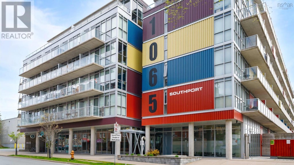 Welcome to the Southport, where industrial style meets downtown convenience in this 1-bedroom, 1-bath condo . Offering 596 sq. ft. of open-concept living plus a 100 sq. ft. patio, this unit features exposed concrete ceilings, a ducted heat pump for efficient heating and cooling, and a sleek kitchen with stainless steel appliances including fridge, stove, microwave, dishwasher, and washer/dryer combo. The layout includes a study nook, spacious bedroom, and modern 4-piece bath. Enjoy access to exceptional amenities such as a rooftop patio with harbour views, a large common room perfect for entertaining, a 24-hour gym, and a live-in superintendent. Ideally located on Barrington Street, steps from the waterfront, restaurants, and shops, this unit offers the perfect blend of modern design and downtown lifestyle. (id:6289)