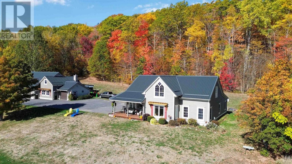 From the moment you step inside, its clear this isnt your average country home. Thoughtfully designed, this 12.5-acre Annapolis Valley property overlooks sweeping apple orchards and reaches as far as the Acadia tower. The kitchen features birch cabinetry, warm wood countertops, beadboard ceiling, authentic wood beams and modern appliances with a timeless, vintage aesthetic. The living room offers a south-facing window seat, where you can take in the spectacular view. A comfortable sitting room with a propane stove and stone fireplace is the ideal spot to end a busy day. Through the walk-through closet, you'll discover the main floor bedroom with skylight and full bath complete with corner soaker tub. This level also includes a half bath, walk-in storage, and laundry room with a custom concrete sink. Upstairs, a family room with a cathedral tin ceiling and an arched south-facing window continues the sense of space and light. Two generous bedrooms and another full bath complete this level. The 4-car (approx. 2000 sq ft) garage opens up a world of possibilities for vehicles, equipment, or creative projects. The newer barn features 5 run-out box stalls, wired for heated water buckets, an insulated tack room with water hydrant and tub and smart design that allows for excellent air flow. Hay storage room holds over 200 square bales, and the 2+ acre fenced pasture gives your minis or small livestock plenty of space to roam. (Electric fencing and fencer excluded.) It would be very difficult to find another property more perfectly suited for mini-livestock. Constructed with ICF for efficiency and durability, the home is kept cozy through propane-fired, in-floor radiant heat, while central AC ensures comfort through the warmer months.The fully owned 24-panel, 9kW solar system keeps operating costs low. Whether your dream is to keep mini-equine, hobby farming, or simply wake up every day to one of the most breathtaking Valley views around, this is a home that offers it (id:6289)