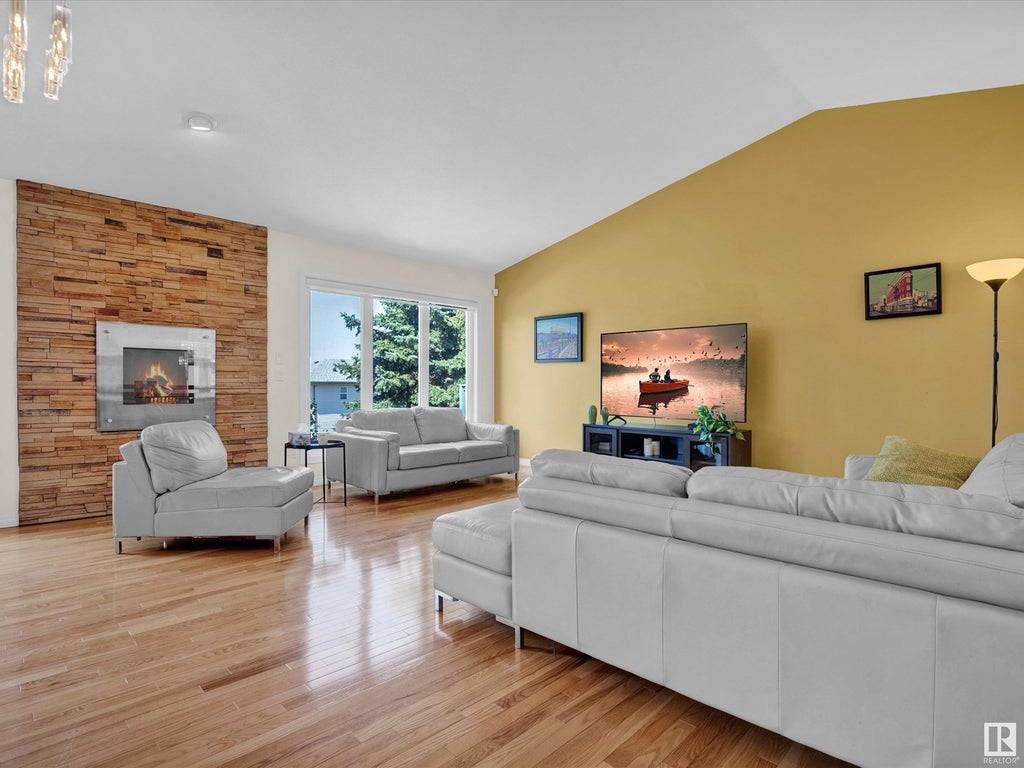 LOCATION! LOCATION! Welcome to this executive townhouse with modern flair in a prestigious area close to shopping, schools, freeways, and amenities! This fully finished walkout offers 3 bedrooms, 3 full baths, and a spacious double garage. You'll love the open concept layout with vaulted ceilings, central A/C, chef-style kitchen with sit-up bar, stainless appliances, and a newer fridge and dishwasher. The walkout basement features new vinyl flooring, a 3rd bedroom, full bath, and blinds. Both the main and basement bathrooms have been beautifully renovated. Upgrades include a glass stair railing, ceramic tile in the foyer and stairs, newer furnace (2018), and full replacement of all plumbing lines and hot water tank in 2023. Complex has replaced all windows and doors. Extra cabinets added in the main bath. Enjoy BBQs with a gas line hookup and walking trails to the river valley just steps away. Laundry is upstairs with the bedrooms. Absolutely gorgeous and move-in ready—this is the one! (id:6289)