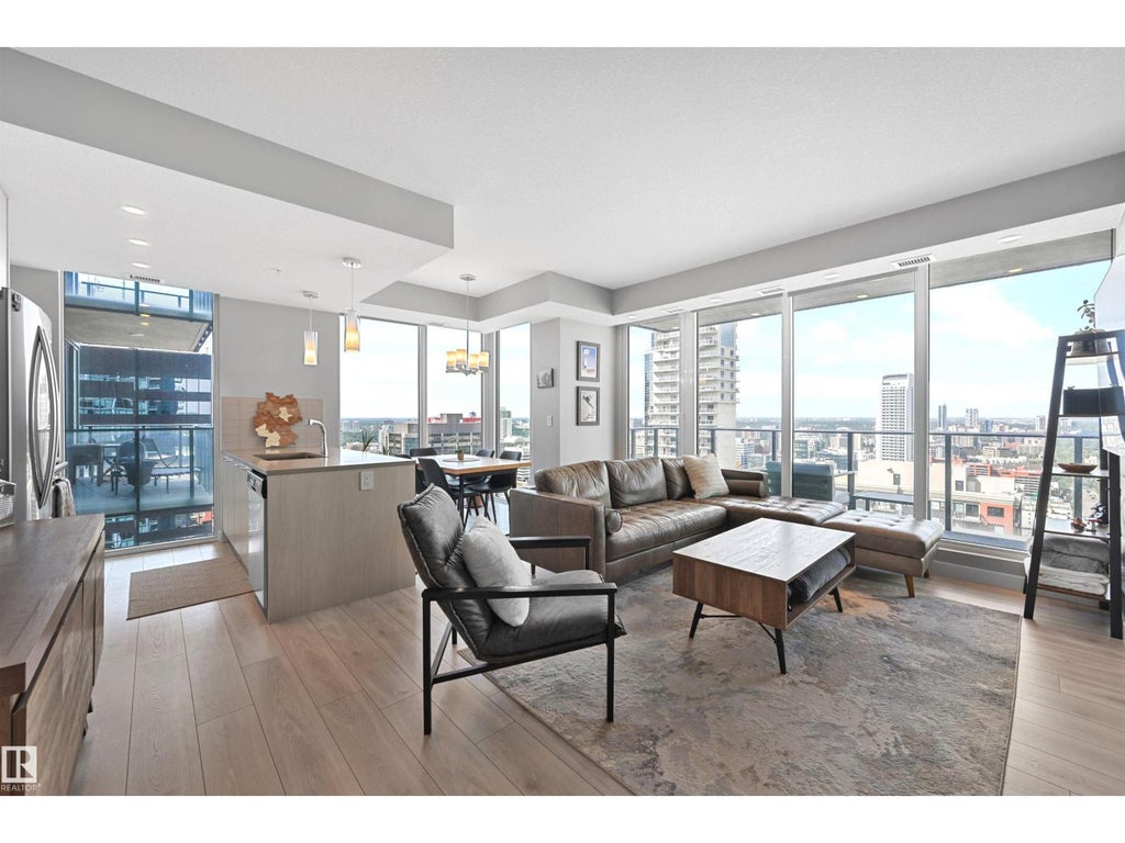 Encore Tower is a stunning 43 storey glass highrise in the heart of our downtown core, within walking distance to every amenity including Rogers Place/Ice District. Impressive skyline views from every suite & designed by Dub Architects. Gorgeous 3 storey lobby w/full concierge service & an expansive amenity floor including a fitness facility & indoor/outdoor entertaining lounges. #2701 offers a naturally lit & well functioning layout, perfect for the professional or empty nester & ideal for an urban lifestyle. Enjoy stunning West/South/North views through expansive floor-to-ceiling windows, w/direct access from your private balcony. Wide plank flooring, neutral tones & sleek modern lines offer timeless appeal for any style. Kitchen highlights modern flat panel cabinets, quartz counters, prep island & dining nook. Primary bedroom is complete w/dual closets & 3pc enuite. 2nd bedroom & 4pc guest bathroom are on opposite ends for maximum privacy. Insuite laundry & titled underground stall complete this home. (id:6289)