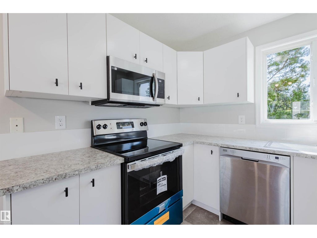 Spacious 4-Bedroom Townhome-Style Condo in Aldergrove. Welcome to this updated 2-storey townhome-style condo, ideally located in the convenient West End community of Aldergrove. The main floor offers an open living and dining area with a fireplace and direct access to the patio — great for everyday living or gatherings. The kitchen features brand-new appliances and ample cabinet space. Upstairs, you’ll find 3 well-sized bedrooms and a full bathroom. The fully finished basement provides additional living space, including a recreation area and an extra bedroom — perfect for guests, a home office, or hobbies. Additional features include in-suite laundry, surface parking, and visitor parking. Walking distance to Aldergrove School, community amenities, and local parks, with easy access to Whitemud Drive and West Edmonton Mall. (id:6289)