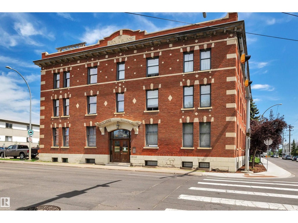 Welcome to one of Edmonton’s finest heritage-designated apartment buildings. Perched above Riverdale and just minutes from Downtown, the Hecla has stood proudly for over a century, offering timeless character and a unique link to the city’s past This standout 720 sq ft open-concept loft blends the warmth of exposed brick walls and soaring 10 ft ceilings blends with thoughtful modern updates. The kitchen is a showstopper with double-height maple cabinetry, granite countertops, a central dining island. The large bathroom offers a deep soaker tub, classic subway tiles, Kohler fixtures, and hidden mechanical room. The Hecla Block isn’t just a building — it’s a lifestyle. Owners enjoy a serene courtyard with pond and an incredible rooftop patio boasting panoramic Downtown views, perfect for morning coffees or summer evenings. The River Valley and Downtown are just steps from your door. Built to last, discover why the Hecla Block continues to captivate homeowners over 100 years later. (id:6289)