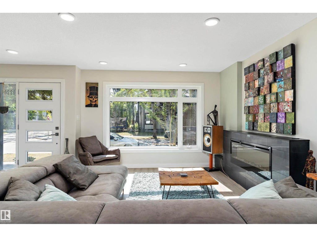 Modern 3-storey triplex townhouse in Inglewood offering 4 bedrooms, 3.5 baths, and almost 2,000 sq. ft. of living space with garage parking. Steps from the 124 St Arts District and U of A trails, this home blends style and location. Enjoy a private rooftop terrace with stunning city views and a loft with wet bar—perfect for entertaining. The open-concept main floor features a chef’s kitchen with high-end appliances, granite & quartz counters, large eating bar, and bright dining and family rooms. Upstairs offers 3 bedrooms, a 5-pc bath, laundry, and a primary suite with 4-pc ensuite and walk-in closet. The finished basement adds a bedroom and 3-pc bath, ideal for guests or a home office. All furniture and household items included, making this a true turn-key, move-in ready home. Don’t miss this rare opportunity in one of Edmonton’s most desirable infill communities! (id:6289)