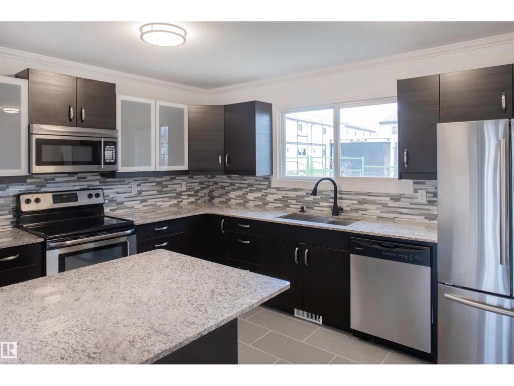 FULLY RENOVATED TOWNHOME! This spacious, stylish townhome has been beautifully updated from top to bottom – and with LOW CONDO FEES, it’s perfect for first time buyers!! Enjoy brand-new vinyl plank flooring, modern lighting, quartz counters, and all new high-end stainless steel appliances. The bright main floor features a sunny living room, stunning kitchen with dark cabinetry, tiled backsplash, island, and a sleek 2-pce bath. Upstairs are 3 generous bedrooms with ample closet space and a fully renovated 4-pce bath with custom tile. The developed basement offers a large family room, full bath, and spacious laundry/utility room. Outside, enjoy a fenced yard with a new patio door and lift station. Backing onto green space and close to transit, shopping, and schools, the location is unbeatable – move-in ready and an absolutel must-see! EXTRA PARKING STALLS AVAILABLE FOR $15/MONTH! MULTIPLE SPOTS AVAILABLE. Well managed condo corporation & healthy reserve fund! (id:6289)