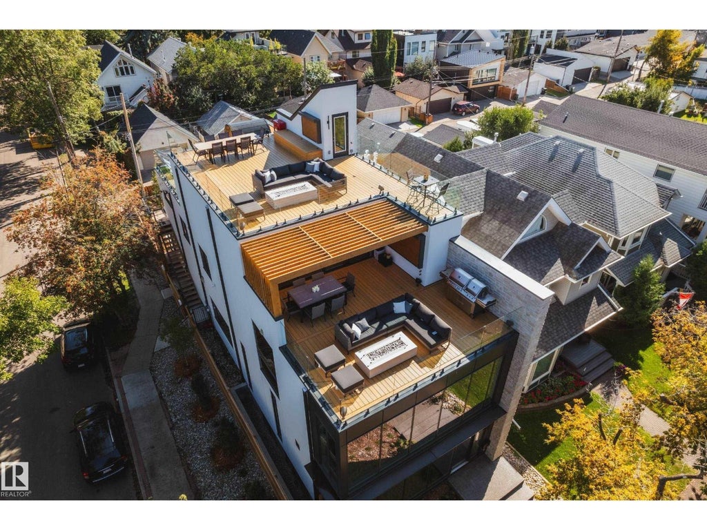 Introducing the 2024/2025 CHBA Home of the Year! A true architectural masterpiece built by Justin Gray Homes offering over 5,000 sqft of luxury across 5 levels. Features 6 bedrooms, 6.5 baths, private office, & 4 rooftop patios w/ 360° river valley & downtown skyline views. Built w/ commercial-grade steel beam construction, 10' ceilings, floor-to-ceiling windows, hardwood throughout, 2 gas fireplaces, chef’s kitchen includes Wolf/Subzero appliances, upgraded cabinetry, & a hidden butler’s pantry. The primary retreat offers a lounge, gas fireplace, & spa-inspired ensuite w/ steam shower & freestanding tub. 3rd floor rooftop Nordic spa w/hot tub, cold plunge, sauna, & steam shower, theatre & bar. FF basement featuring gym, bedrm & 5-car heated garage w/ epoxy floors & heated driveway. Also 2 self-contained one-bedroom income generating suites! Fully landscaped maintenance free yard w/ irrigation, smart home automation, outdoor TVs & fireplaces. Steps to Muttart, River Valley, Edmonton Ski Club & downtown! (id:6289)