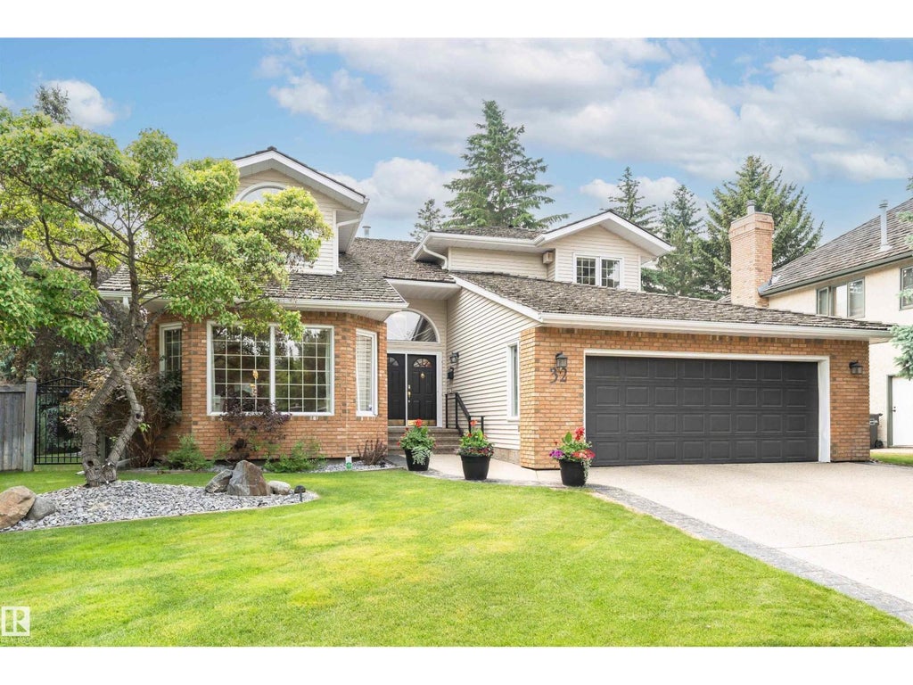 Nestled in a prestigious gated community, this beautifully landscaped property offers exceptional living space inside and out. Step into a grand foyer leading to a front living room featuring a cozy fireplace and charming bay window. The main level boasts a formal dining area, sunroom facing the backyard, family room, kitchen with a breakfast nook. New main floor furnace installed February 2025. Enjoy the convenience of a laundry room and an attached double car garage. Upstairs, the open-to-below layout has an office area with a built-in desk, two bedrooms, and a 4 piece bathroom. The primary suite is a true retreat, offering a walk-in closet, 5 piece ensuite, and a private balcony overlooking the expansive, landscaped backyard with a large deck. The fully finished basement includes an additional bedroom, 3 piece bathroom, oversized rec room, and ample storage. Just 5 minutes to the Edmonton Country Club and West Edmonton Mall, this home combines comfort, style, and location in one perfect package. (id:6289)