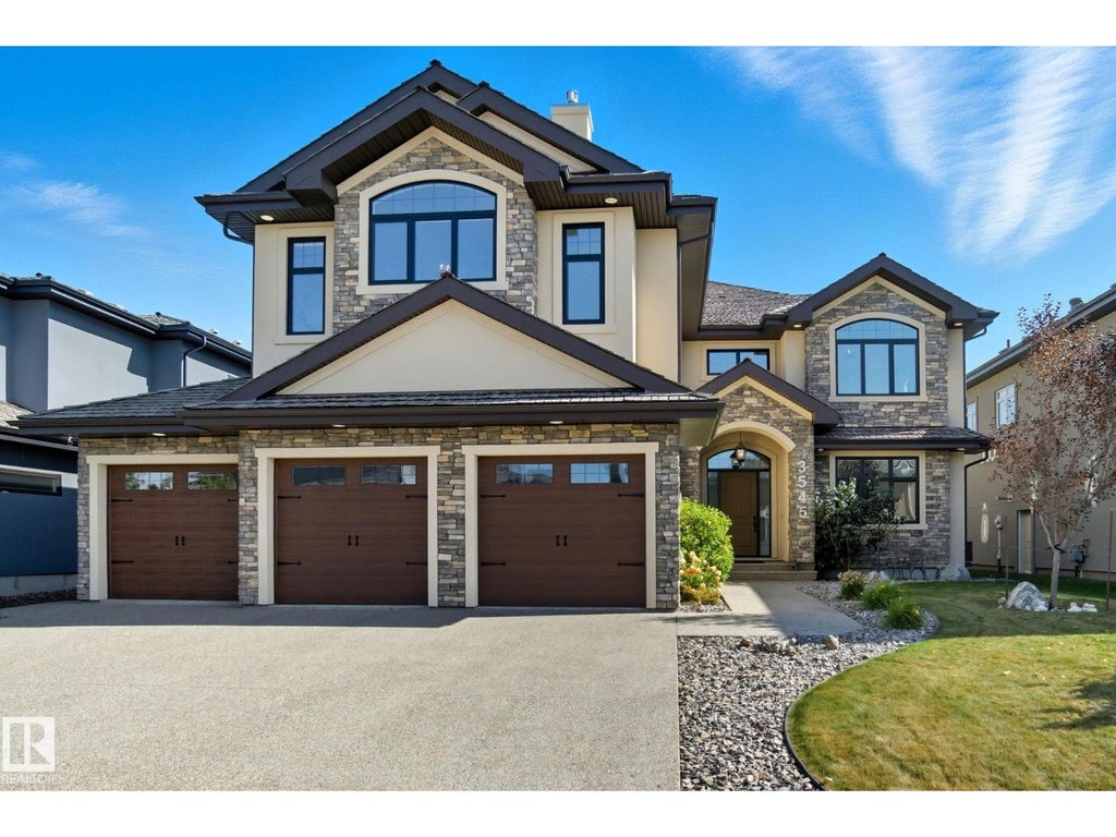 Welcome to this exceptional home offering over 6000 sq ft total living space with a rare blend of luxury, function, and style. The triple tandem garage WITH 8' DOORS, FLOOR DRAINS, GAS LINE & CAR CHARGER easily accommodates up to four vehicles. Inside, you are greeted with soaring ceilings, a dramatic CATWALK, and a formal dining room perfect for entertaining WITH BUILT IN SPEAKERS. The 10' main floor also features a spacious bedroom with ensuite connection, while in the 9' upstairs you’ll find a JACK & JILL bathroom and vaulted ceilings that create a grand feel throughout. The great room and primary suite feature stunning double-sided gas fireplaces. The 9' basement is designed for both fun and relaxation, complete with a DANCE STUDIO/MOVIE ROOM, WET BAR, and private SAUNA retreat with IN FLOOR HEAT. WATER PURIFICATION INCL. With west-facing front exposure and an east-facing backyard, natural light flows beautifully from morning to evening. This home truly combines elegance with everyday comfort. (id:6289)