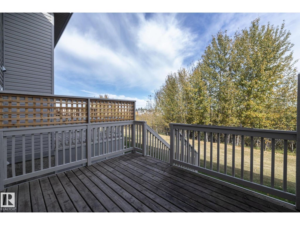 Backing the Ravine! This fully finished 2-storey offers nearly 1,800 sq. ft. of living space in a setting that’s hard to beat. Step onto the deck & enjoy birdsong & rustling leaves as your daily backdrop. Inside, the main floor features an eat-in kitchen w/corner pantry, rich espresso cabinetry, & a bright living space w/south-facing windows that flood the home with natural light. Upstairs, the primary suite includes a walk-in closet, while two additional bedrooms & a full bath complete the level. The finished lower level adds a large family room w/a cozy gas fireplace—perfect for winter evenings. Recent updates include fresh paint & new carpet throughout. With 2 energized parking stalls, ample visitor parking, & a quiet cul-de-sac location, this property combines comfort with practicality. Trails leading into Devon’s stunning river valley are just steps away, & commuting is simple with quick access to Leduc, EIA, Nisku, Acheson, & Edmonton. So what are you waiting for? Come take a peek and fall in love. (id:6289)
