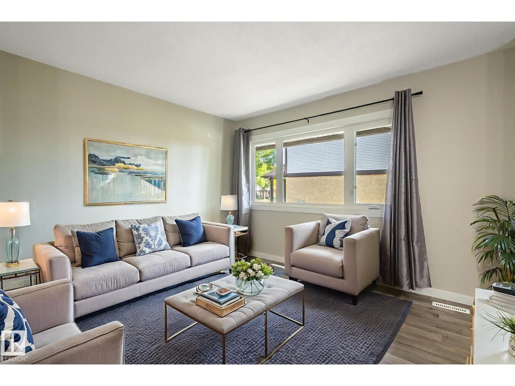 ELEGANTLY RENOVATED & MOVE-IN READY – Welcome to Unit 45, a beautifully finished END UNIT that blends STYLE and COMFORT in a well-managed community. This home has been COMPLETELY UPDATED with NEW FLOORING, FRESH PAINT, MODERN CABINETS, DESIGNER FIXTURES, and a full set of STAINLESS-STEEL APPLIANCES, creating a space that feels fresh, sophisticated, and TURN-KEY. The bright main floor is perfect for both everyday living and entertaining, with a welcoming living room, a dining area filled with natural light, and a modern kitchen with abundant storage. Step outside to your PRIVATE PATIO—perfect for morning coffee or evening relaxation. Upstairs, the SPACIOUS PRIMARY bedroom offers a serene retreat, joined by two additional bedrooms and a stylish 4PC bath. The finished basement extends your living space with a cozy rec area, laundry, and storage. With TWO ASSIGNED PARKING STALLS and a QUIET END-UNIT LOCATION, this home offers an ideal low-maintenance lifestyle close to PARKS, SHOPS, and TRANSIT. (id:6289)