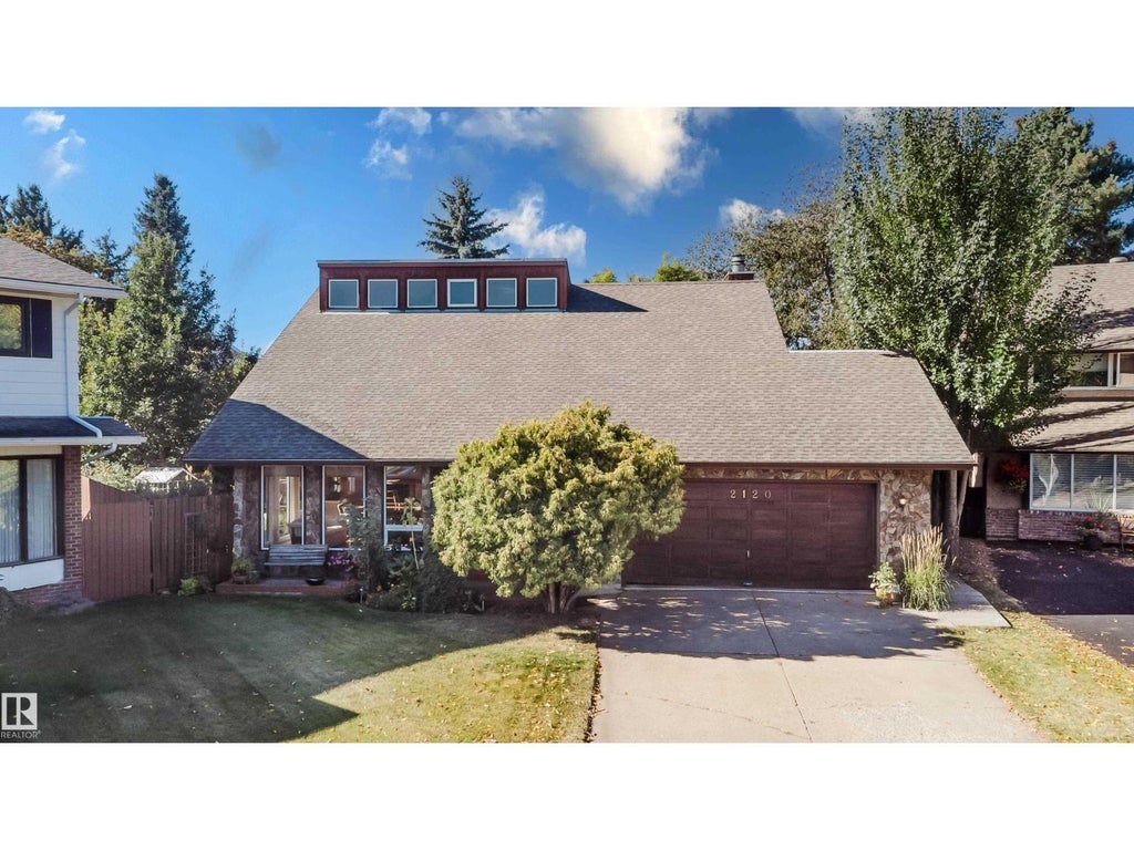 Set in a quiet crescent in Skyrattler, this 2-storey home offers 2,782 sqft of total living space, a thoughtful layout, and a sense of warmth that’s hard to find. Every space has been cared for and upgraded with intention, blending comfort and functionality throughout. The main floor flows naturally through a vaulted living room, dining area, quartz kitchen with stainless steel appliances, breakfast nook, and a cozy family room with fireplace. A 2-piece bath and laundry area complete the level. Upstairs, three bedrooms include two with balcony access overlooking the yard, a skylit ensuite, and a loft above the living room. Downstairs adds a bedroom and open area for future potential. The southwest-facing backyard is a private retreat surrounded by mature trees and layered gardens. With updated windows, furnaces, A/C, and fresh paint, this home combines modern comfort, natural beauty, and timeless appeal near parks, schools, and the LRT. (id:6289)