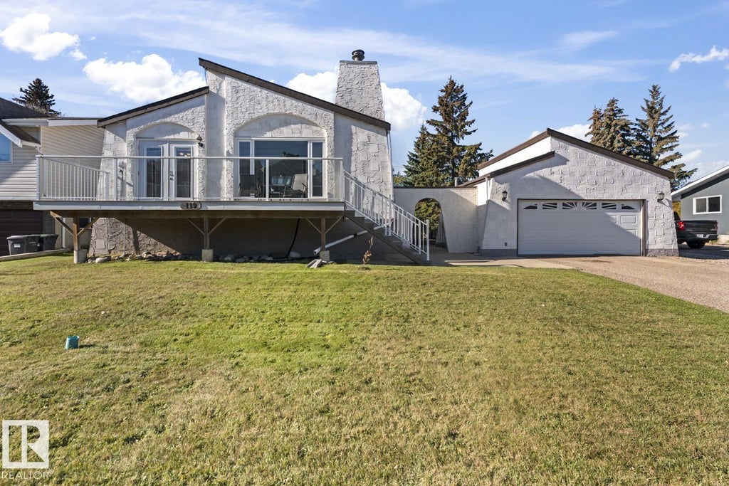 You've always wondered what this stucco spanish-style bilevel looks like and now you can know! Very well built and situated 1/2 block from the beach on a massive lot with back alley access. This home has had various upgrades over the years from a new kitchen, shingles, windows, duradeck, main bath, sprinkler system and more!A n exceptional sized living room with a real wood fireplace, separate dining room and custom kitchen with Cambria counters. 3 bedrooms up and 2 down with a secondary family room. Recently the garage has been insulated and new gas heater has been installed. Quaint courtyard area attached to the breezeway between home and garage for you to entertain at with Natural Gas BBQ hook-up. One of Cold Lake's unique and exceptional properties! (id:6289)