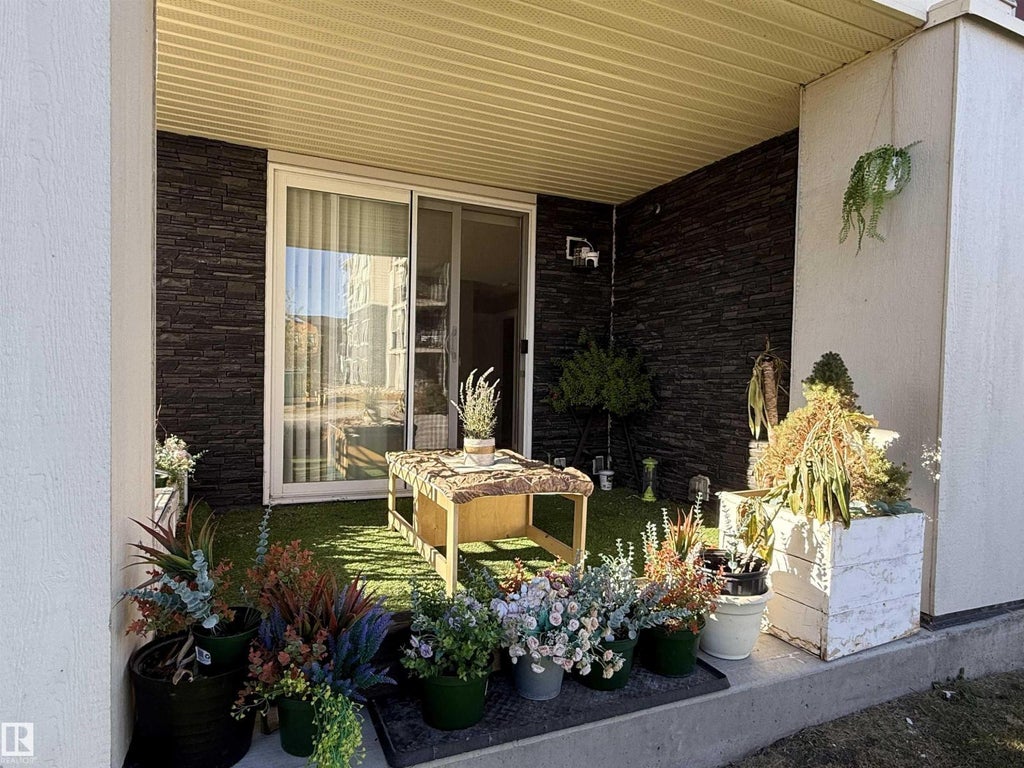 Welcome to this well maintained property located on the GROUND FLOOR CORNER UNIT of the building at Vita Estates. It has it's own balcony with an access outside the building. This unit has it's own flex space that can be use as an office space or personal area. A very spacious living area and Kitchen area that for sure everyone will love. A two bedroom unit wherein the primary bedroom has it's own 3 pcs ensuite washroom and a walk-in closet. It has in-suite laundry that gives the owner a personal space during laundry day! Portable A/C & other furniture except the wall decor at the living room & 1 box with wall at the patio & security camera's will be included if buyer is interested. Underground parking that comes with a titled stall across the elevator and has a storage just in front of the stall. Located at the wonderful neighbourhood of Crystallina West and is near shopping areas, public transportation, and an access to Anthony Henday via 66 street or 97 street. (id:6289)