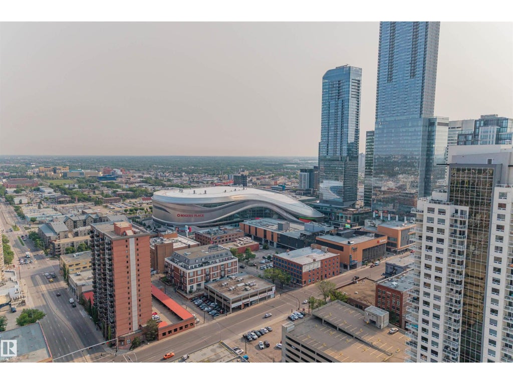 PRICED TO SELL!! Welcome to one of the most desirable large 724 sq ft, 1-bedroom corner units in the sought-after ICON II, right on 104 Street in the vibrant heart of Downtown. Step into an open-concept layout flooded with natural light from numerous windows. The modern kitchen features granite countertops, stainless steel appliances, sleek cabinetry, and a breakfast bar for casual dining, while the central dining area anchors the home.The spacious primary bedroom is next to a well-appointed 4-piece bathroom, and the unit offers the convenience of in-suite laundry, ample storage, and UNDERGROUND titled parking. Relax or entertain on your west-facing balcony, perfect for evening sunsets over the city. Walk to Rogers Place, the Ice District, top dining, coffee shops, farmers market, and River Valley trails—all just steps away. This unit can be fully furnished & turnkey, or move in and make it your own. Refreshed, ready, pet friendly and waiting for you! (id:6289)