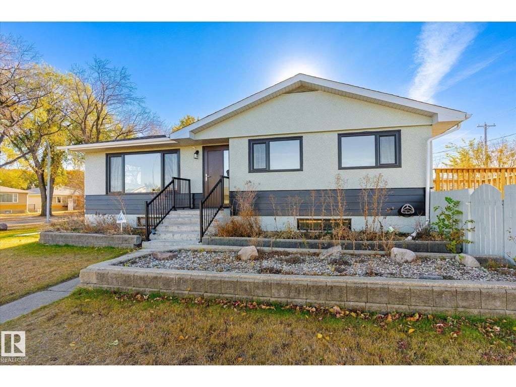 Move right into this fully renovated 6 bedroom bungalow! No expense was spared in the upgrades of this home. High quality European influenced renovation including: upscale windows and doors and modern bathrooms tiles, pot lighting, plus there is vinyl plank flooring throughout the house. The gourmet kitchen features pendant lighting, stainless steel appliances, stone counters and two toned modern cabinetry. Natural light shines into the house and basement through large windows. There are a total of 2 renovated bathrooms (one with a double sink), and a separate entrance to basement. The finished basement has 3 bedrooms, bathroom and laundry. Heated double garage with double doors large driveway, and RV parking. Lots of parking is available! Deck, patio area and fenced yard is perfect to relax in. Added bonus is this home has an indoor sprinkler system. Perfect home for a family that is extra fire safe, maybe run a business? Convenient location with easy access to Yellowhead freeway and close to schools. (id:6289)