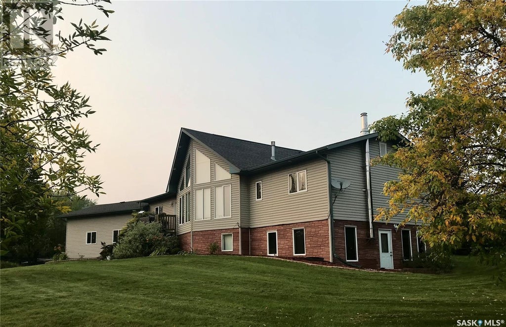 This gorgeous acreage is a must to see! Large walk-out bungalow is situated on 10 acres with a beautiful yard site and only 15 minutes west of Meadow Lake. You will certainly enjoy all the room this home has to offer. There are 3 main floor bedrooms, plus an office. The main living areas are very open and feature gorgeous windows and vaulted ceilings which give you a panoramic view of the country side. Dining room doors lead out to a 16ft x 20ft sunroom which is great for entertaining. The lower level of this home has a large family room, 4th bedroom, 2pc bathroom, laundry room, storage and mechanical area. All windows on the lower level are very large and provide great natural light. The house is heated with propane - forced air furnace, and there is also a propane fireplace in the living room. Lower level also has in-floor heat. Double attached garage measures 32ft x 24ft. Central A/C in 2017, shingles 2023, water heater March 2024, furnace is original, carpet & upstairs flooring approx. 2019, septic & well pumps replaced approx. 2019, washer & dryer 2020. Husqavarna (2014) riding lawn mower & TroyBilt garden tiller included, Starlink equipment for internet included, Projector/screen/surround sound speakers included & fridge in basement included. (id:6289)
