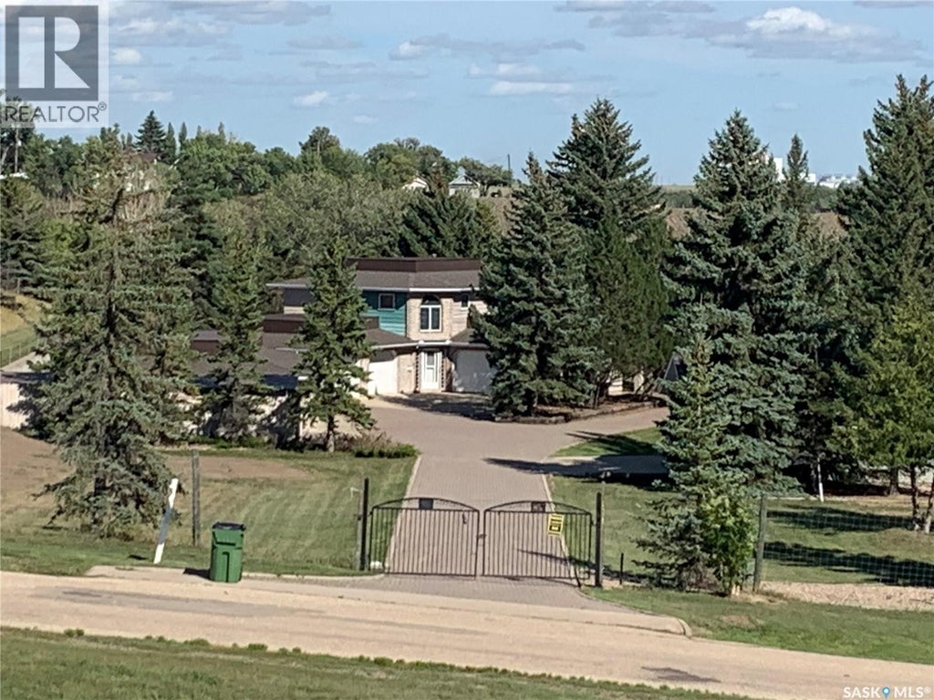 A VERY RARE & UNIQUE gated 2.36 Acre property overlooking the Moose Jaw River Valley. The property is landscaped w/grass, trees (fruit trees, shrubs, hedges), patio, decks & expansive interlocking stone drive & parking areas. The entire site is fenced w/a “game” fence & metal gate plus a RETAINING WALL – approx. 280 ft of poured & reinforced concrete on the North side as this property was levelled into a hillside. This site is superior to any property in Moose Jaw in its grandeur & rarity. Property hosts 2 x Att. Dbl. Garages, 1 x Oversized dbl. Garage & 1 X Triple Det. Heated Garage. There are 2 x Parking Pads that could accommodate another 12 or more vehicles & a stately drive that leads you into the property from the front gate plus a Dual sided Shed, set as an outbuilding. Now let’s talk about the 2 Storey home. There is an upper Deck off Primary Bed, in addition to a wraparound deck from dining area & even a Patio facing the hillside. The main entrance is named “Mudroom” as this joins the 2 Att. Garages, however there is a formal Front entrance w/Foyer w/cathedral height ceiling w/drop light style chandelier. This home is SOLID & the space is incredible that can be updated to your personal choice. 3 Bedrooms, Den, 2 x Family Rooms, 2 x Carpeted Crawl Spaces named as “Other”, 3 Baths & w/some elbow grease this property becomes an ESTATE, not only for a family but a property where you could not only live but operate your business. The possibilities are endless! Serious & Qualified buyers only. HOME IS SOLD AS IS, WHERE IS! Drive to 7th Ave SW, drive down the road that was previous access to the site of the former Wild Animal Park & you will see the Front Gate! FOR A FULL VISUAL TOUR, PLEASE CLICK ON THE MULTI MEDIA LINK and Let’s Make Your Next Move! (id:6289)